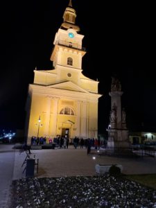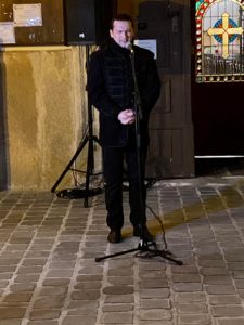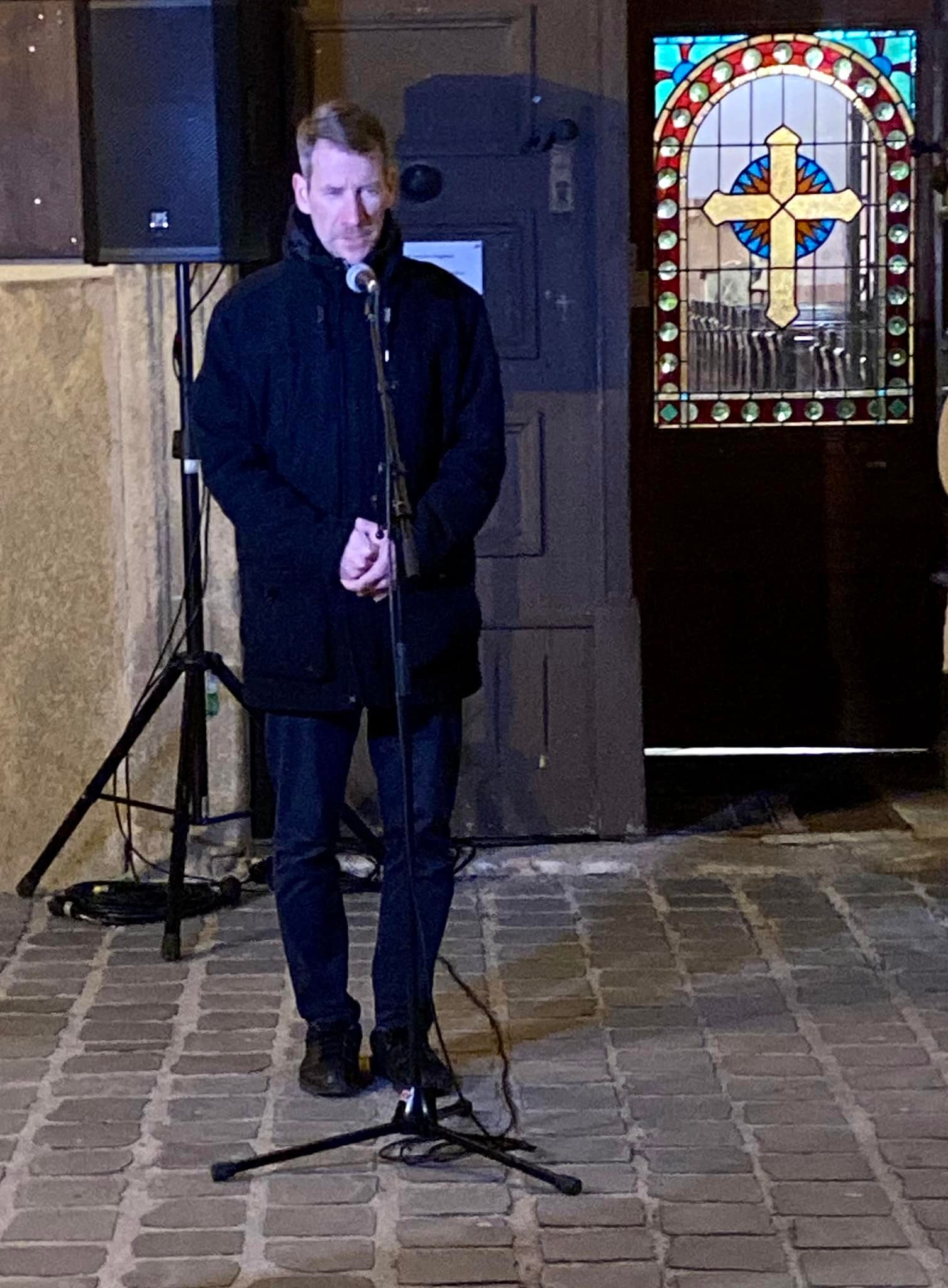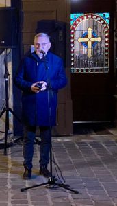 Közös imára gyűltek össze a ceglédiek ma este a Szentháromság szobornál, a katolikus templom előtt a békéért, a háború befejezéséért, Földi László országgyűlési képviselő hívására. (Szöveg, kép: KÖD jelenti)